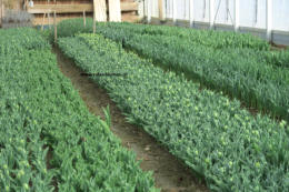 im geschlossenen Gewächshaus fühlen die Tulpen
